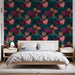 Çiçekli Duvar Kağıdı | Koyu bir arka plan üzerinde renkli çiçek ve yaprak desenleri
