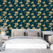 Fototapet çiçekli altın | Derin mavi zemin üzerinde sarı çiçekler