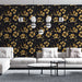Fototapet siyah ve altın çiçek deseni | Siyah zemin üzerinde altın çiçek motifli