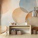 Modern ve sanatsal bir dokunuş ekleyin iç mekanınıza su boya daireler duvar kağıdı ile. Bu tasarım, yumuşak bej, turuncu ve mavi tonlarında örtüşen daireler deseni sunarak sakin ve çağdaş bir ambiyans yaratıyor.