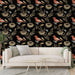 Bu duvar kağıdı, küçük kırmızı kuşlar ve yuvacıklar ile eşlik eden canlı bir desenle ayırt edilir. Siyah arka plan, kuşların parlak renklerine ve altın detaylarına parlamasına izin verir, cesur ve davetkar bir genel görünüm oluşturur.