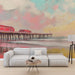 Çizimli Duvar Kağıdımız sakin bir sahil manzarasını çağrıştırarak, parıldayan sularda uzanan kırmızı iskele ile pastel tonlarda pembe, mavi ve sarı renklerle dolu bir gökyüzü altında tüm detaylarıyla dalgalar ve yansımaların bu sanat eserine bir dokunuşu var.